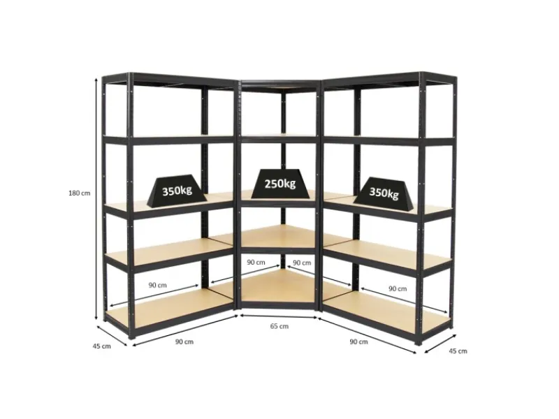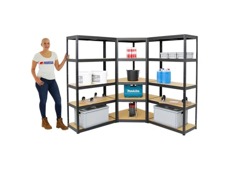 Mit dem Spar-Set bestehend aus 1 Eckregal und 2 Schwerlastregalen Ordnung schaffen & Geld sparen