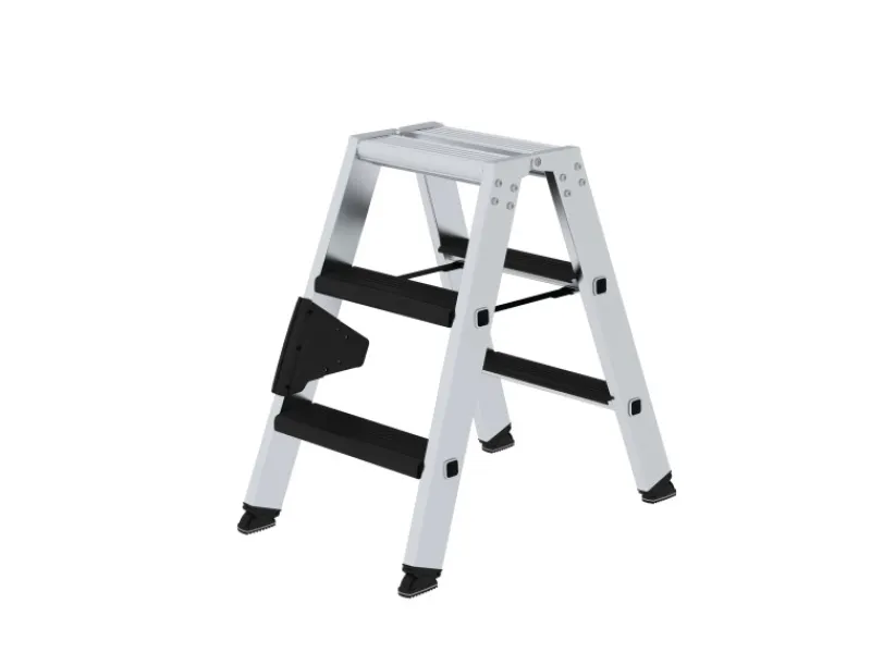 Stufen-Stehleiter aus Aluminium mit stabilem Rechteckrohr-Holme