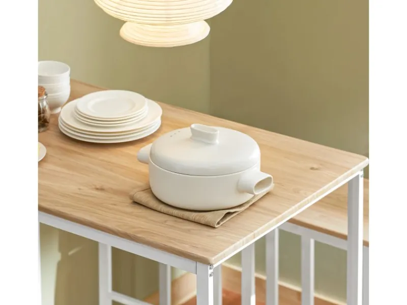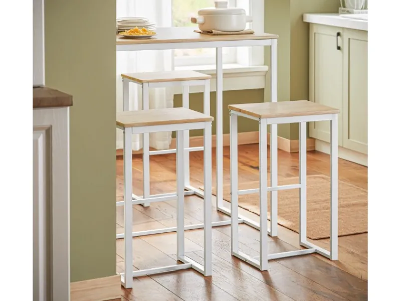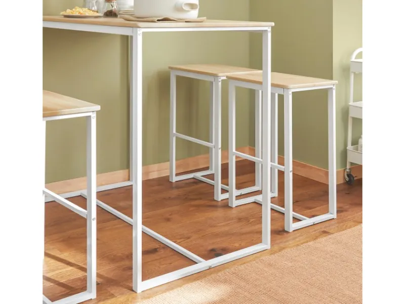 Bartisch und Barhocker aus weiß pulverbeschichtetem Stahlrahmen mit MDF(E1)-Platten, perfekt für Esszimmer, Wohnzimmer, Küche oder kleine Wohnungen.