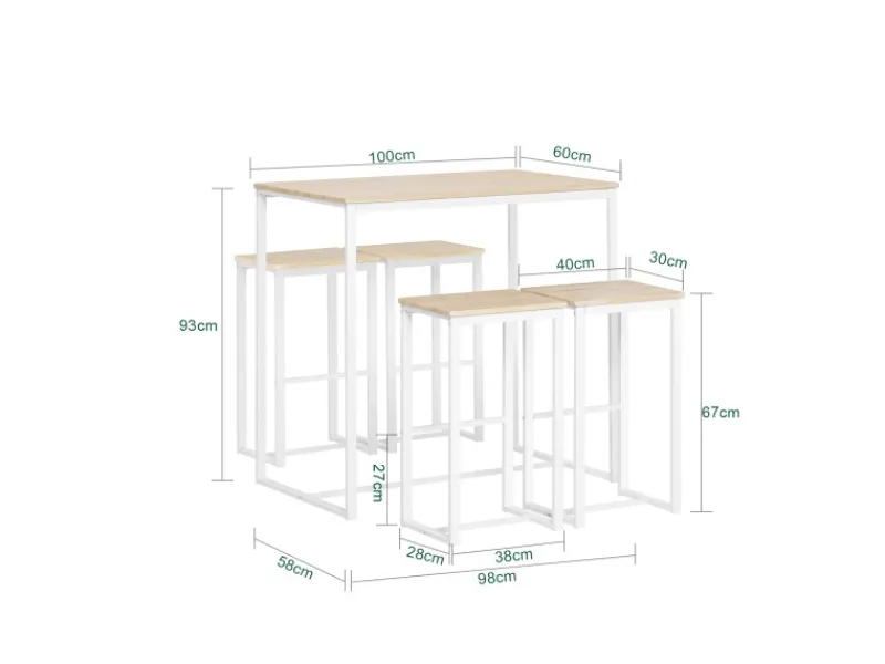 4 Barhocker lassen sich unter den Bartisch schieben, optimiert für kleine Küchen, Balkone, Esszimmer, Wohnbereiche – maximale Raumnutzung garantiert.