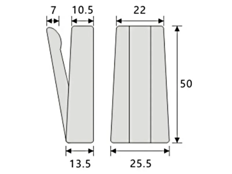 Höhe: 50 mm, Breite: 25,5 mm, Tiefe eingeklappt: 13,5 mm, Tiefe ausgeklappt: 49 mm
