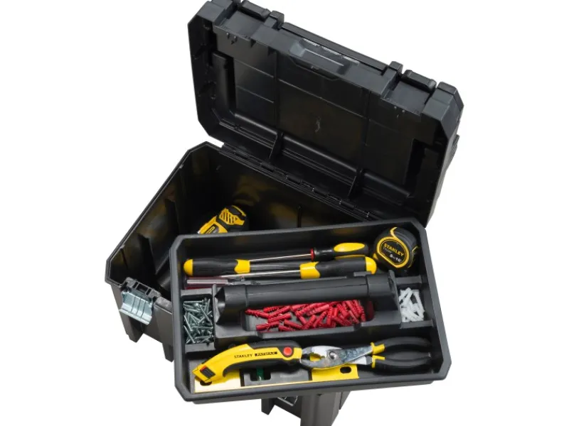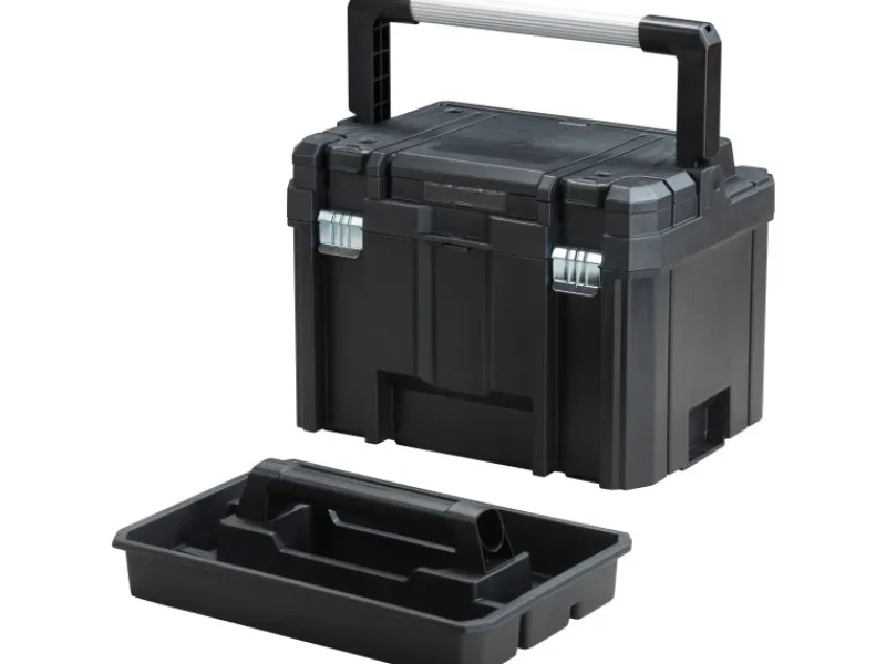 Die tiefe FatMax Tstak Werkzeugbox ist bis zu 10 kg belastbar und kommt mit Organizer im Deckel.