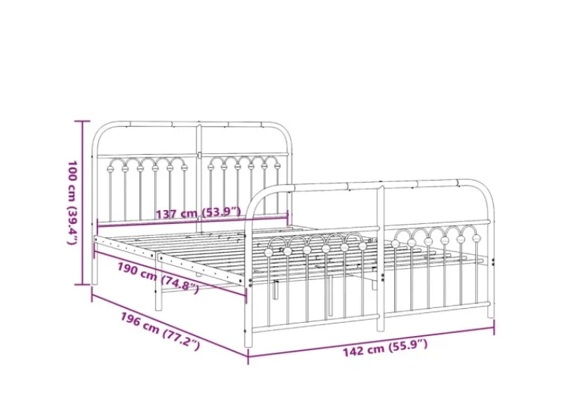 Gesamtabmessungen des Bettes: 196 x 142 x 100 cm (L x B x H)