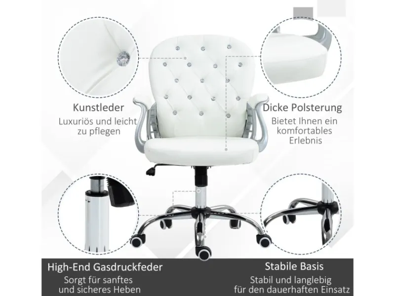 ● Ausgestattet mit einer dekorativen Rückseite, fügt sich dieser elegante Bürostuhl nahtlos in jedes Ambiente ein – ob Schlafzimmer, Wohnzimmer, Esszimmer oder Büro
