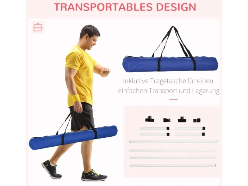 Haben Sie einen lebhaften Hund, der gefordert und gefördert werden möchte? Dann bietet ihm dieses großartige Agility-Set von PawHut die ideale Abwechslung. Das 4er-Set besteht aus 2 Hürdenstangen, 2 Slalomstangen und 4 Bodenstangen: hervorragend, um mit Ihren Vierbeinern in die Welt des Agility-Trainings einzusteigen. So stärken Sie nicht nur die Bindung zwischen Ihnen und Ihrem Tier, sondern fördern auch spielerisch die Gesundheit Ihrer Fellnase.