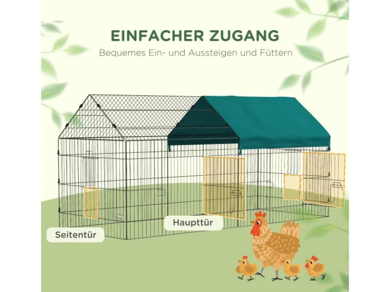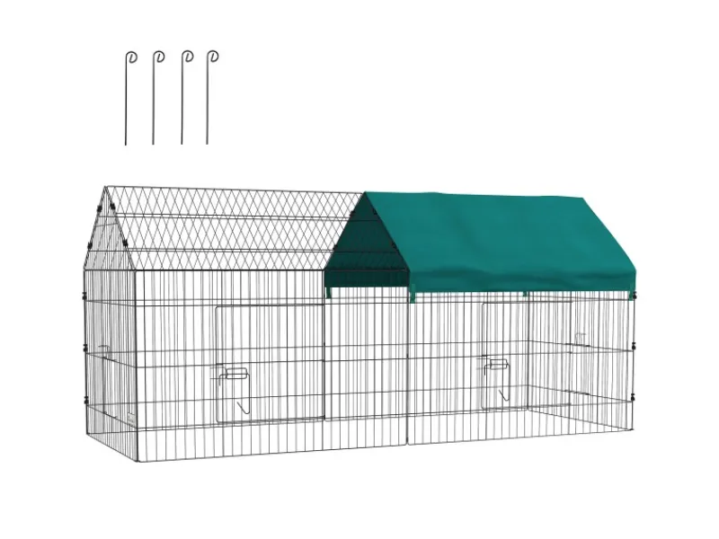 PawHut Freilaufgehege mit Abdeckung und 4 Türen