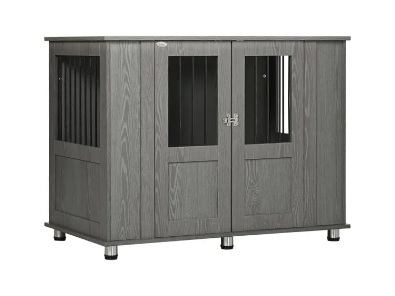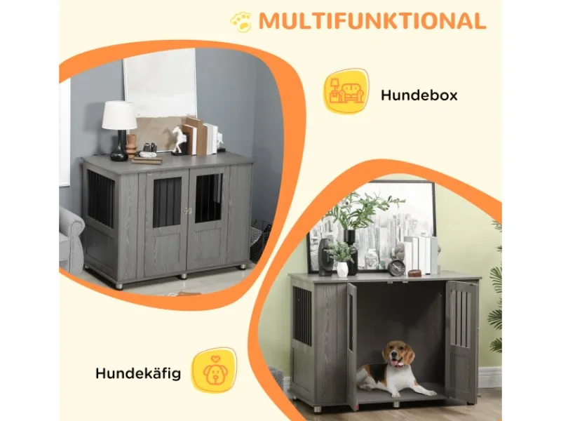 Dieser Hundekäfig von PawHut ist ein bequemer und sicherer Rückzugsort für ihren Hund. Stahlstäbe an den Fenstern sorgen für eine gute Belüftung, während der erhöhte Boden das Eindringen von Feuchtigkeit verhindert. Die magnetische Tür mit Riegeln hält sie sicher und geschützt im Inneren. Sie können den Raum verlassen, in dem Wissen, dass ihre Hunde sicher sind. Ein moderner Haustierkäfig, entworfen, um Ihre Haustiere zu schützen und gleichzeitig Stil in Ihr Zuhause zu bringen.