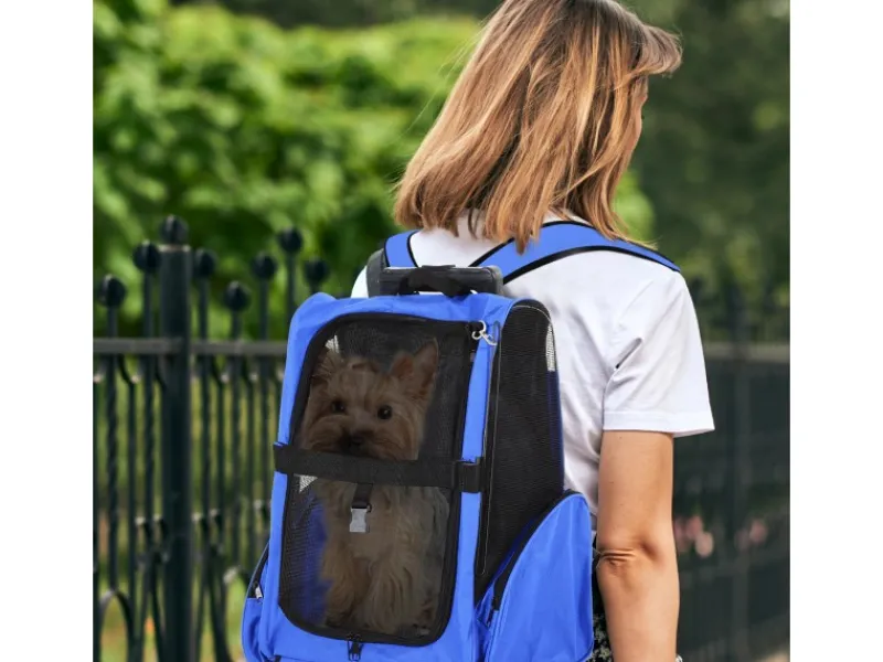 PawHut Hundetrolley Transporttasche für Tiere Trolley 2-in-1 Blau 42 x 25 x 55cm