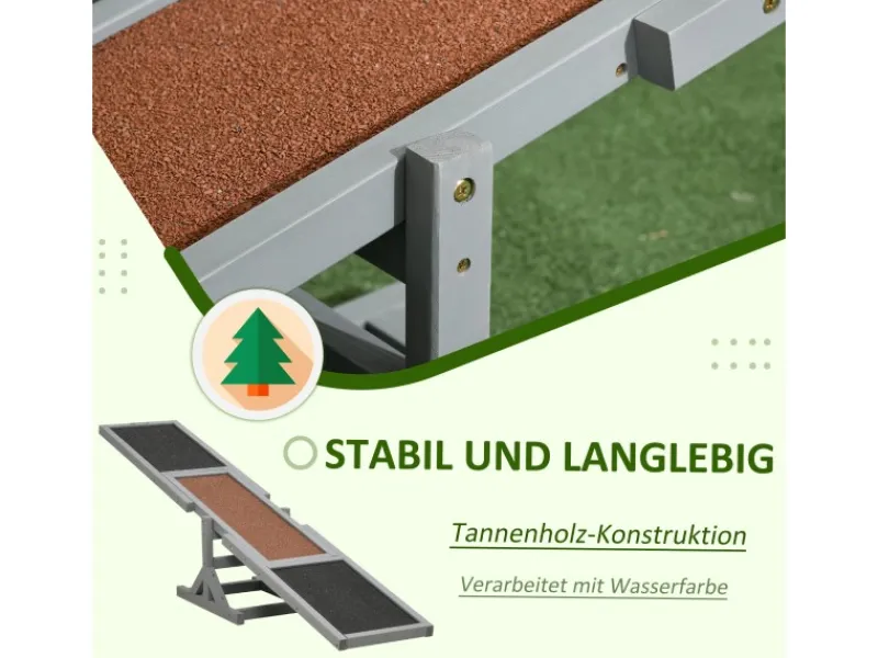 Die PawHut Hundewippe für Agility bietet deinem Hund eine Möglichkeit, sich zu bewegen. Unsere Hundewippe für Agility hat eine rutschfeste Oberfläche, die deinem Hund beim Balancieren einen besseren Halt gibt. Unsere Agility-Ausrüstung kann das Selbstvertrauen, das Training und den Gehorsam fördern und dabei helfen, den Hund in Form zu halten. Unsere Wippe ist für Hunde bis zu 30 kg ausgelegt und somit für die meisten Hunderassen geeignet.
