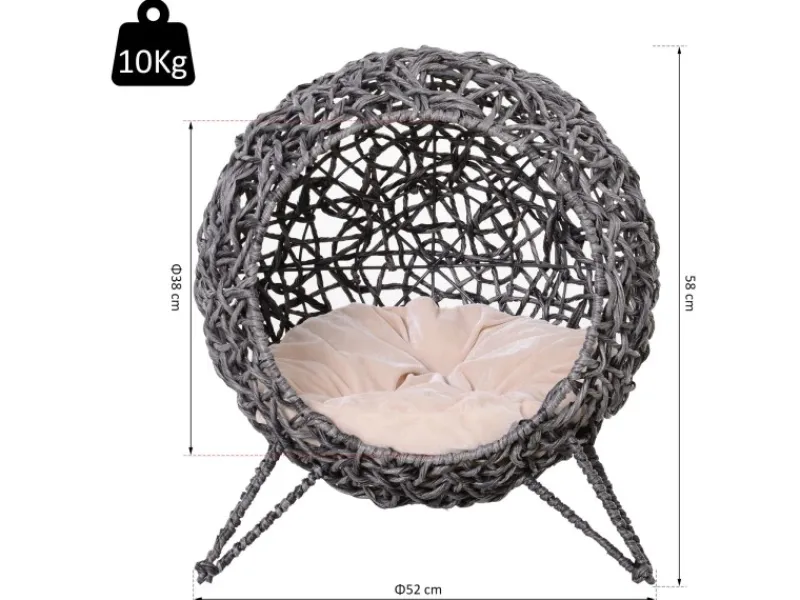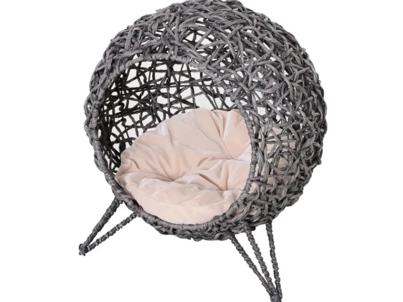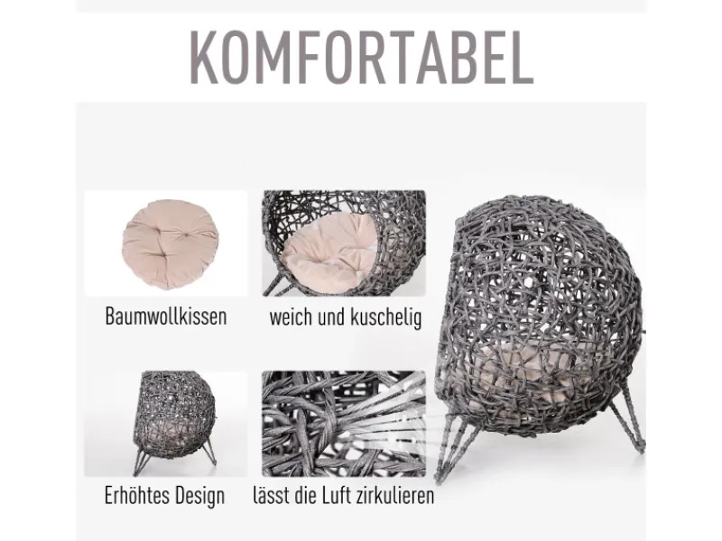 PawHut Katzenhaus aus Rattan mit Kissen Erhöhten Füßen