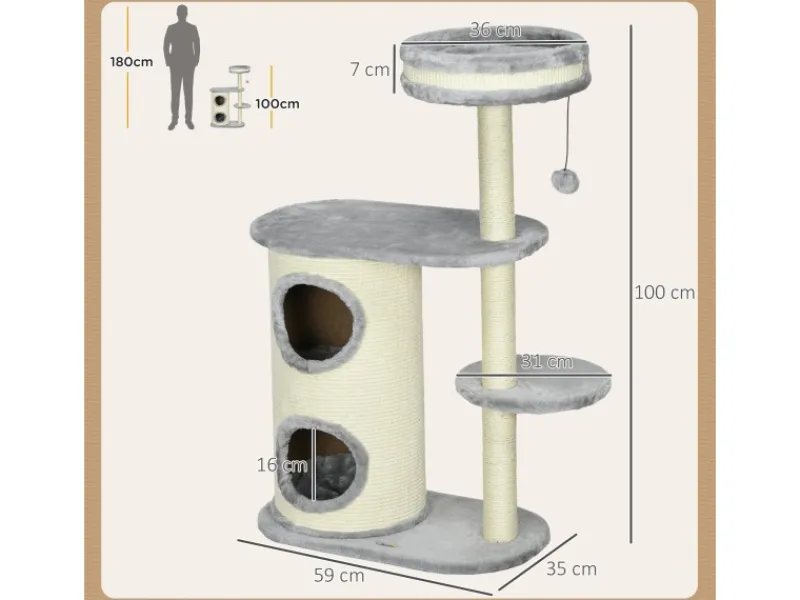 Befriedigen Sie die natürlichen Instinkte Ihrer Katze auf sichere Weise mit diesem Kratzbaum von PawHut! Dieser Katzenbaum enthält Kratzbäume aus Sisalseilen, Plattformen, ein Katzenbett, eine doppellagige Katzenhöhle und ein hängendes Ballspielzeug für vielseitiges Spielen. Mit diesem Kletterbaum bleiben Ihre Möbel frei von Kratzern. Geben Sie Ihren verspielten Katzen einen sicheren Platz, um ihre Krallen am Katzenaktivitätszentrum zu schärfen.