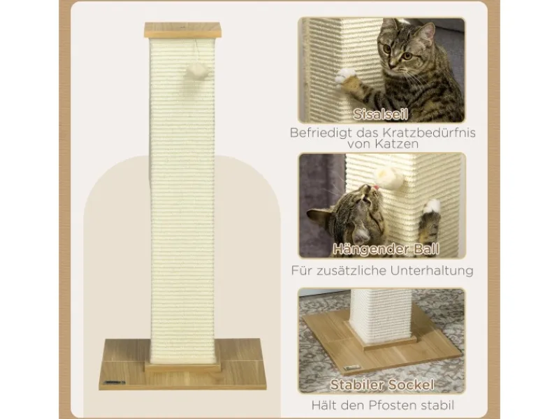 PawHut Kratzbaum 80 cm mit Spielball Kratzsäule aus Sisalseil