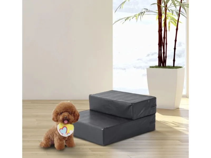 Die Katzentreppe von PawHut ist besonders für ältere Tiere mit Gelenkproblemen geeignet. So erreichen sie leicht das Sofa oder andere höher gelegene Orte. Dank des 2-in-1 Design lassen sich die Kissen außerdem auch so anordnen, dass sie als gemütliche Unterlage genutzt werden können. Das hochwertige PU-Leder lässt sich gut reinigen und der Bezug ist bei Bedarf abnehmbar. Die Kissen sind durch die dicke Schaumstoffpolsterung besonders weich und bequem. Mit der neutralen Farbe bringt die Treppe ein wohnliches Design mit und fügt sich perfekt in Ihre Raumgestaltung ein.