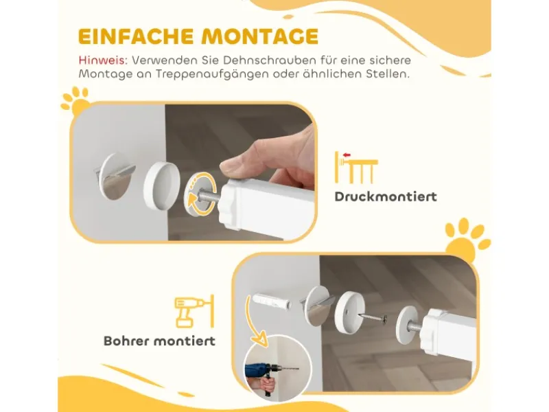 ● Die Druckmontage des Treppenschutzgitters schont die Wand, kein Bohren notwendig