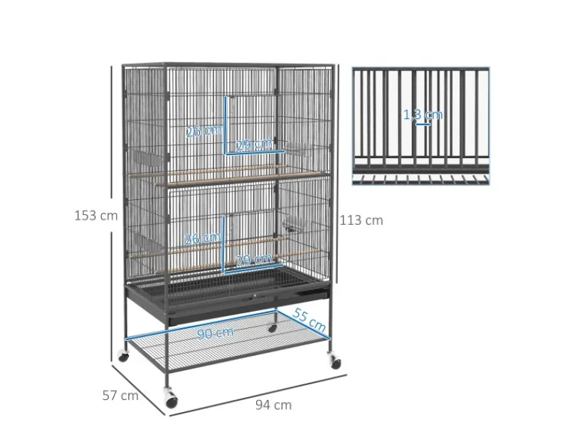 PawHut Vogelkäfig mit Sitzstangen Ablage Bodenwanne