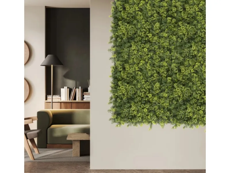 Mit einer Größe von 100×100 cm und 1489 Blättern bringt die künstliche Pflanzenwand eine grüne, natürliche Atmosphäre in jeden Raum.