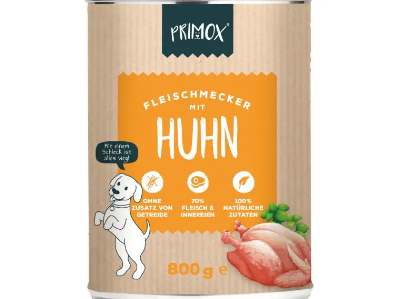 Primox Fleischmecker mit Huhn ist für Hunde aller Rassen und Größen geeignet. Es bietet eine schmackhafte und nahrhafte Option für eine ausgewogene Hundeernährung. Es wurde von Fressperten empfohlen, was darauf hinweist, dass es von Experten im Bereich Tierernährung positiv bewertet wurde.