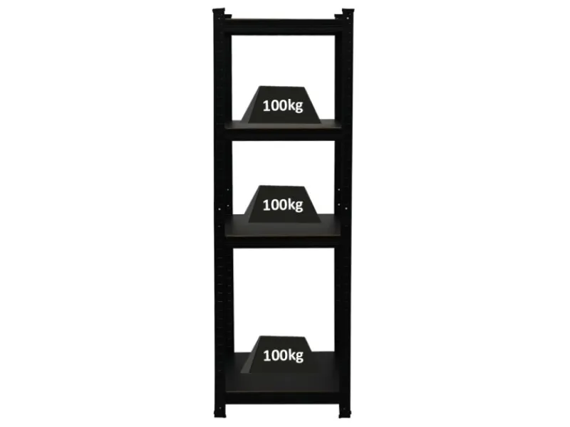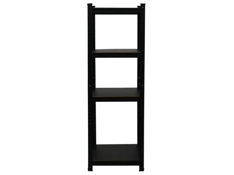 Mit einer Fachlast von 100 kg bietet das Regal eine zuverlässige Lösung zur Aufbewahrung – sei es in der Werkstatt, zu Hause oder im Büro. Die mattschwarze Oberfläche verleiht dem Regal einen modernen und eleganten Look, der sich nahtlos in jede Umgebung einfügt. Selbstverständlich sind die 4 Fachböden in der Höhe verstellbar und zwar in einem 2,5cm Raster.