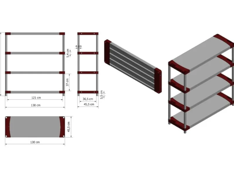 Modulare Kombinierbarkeit von mehreren Regalen sowie Kürzung der Regalböden auf Maß möglich