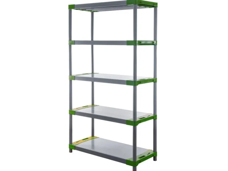 Robustes Kunststoffregal mit 5 Fachböden und mit einem Traglast von 120 kg pro Ebene