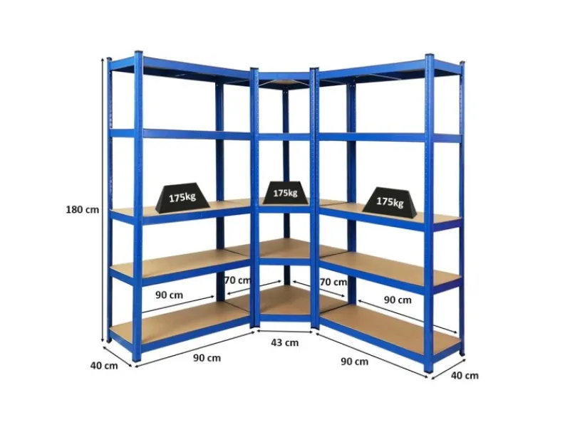 Mit dem stabilen Eckregal-Set RAGNAR von PROREGAL sparst Du und schaffst dabei Ordnung. Mit einer Fachbodenlast von 175kg ist das Regal für Lager, Werkstatt oder größere Lasten in der Garage bestens geeignet.Die Produktion des Regals erfolgt nach höchsten Qualitätsstandards. Die Fertigung ist nach ISO 9001, ISO 28000 und ISO 50001 zertifiziert. Das Metall ist pulverbeschichtet, um eine lange Lebensdauer sicherzustellen und entgratet, um unangenehme Schnittkanten zu beseitigen. Der Aufbau ist einfach und erfolgt durch Steckmontage mit dem Easy-Slide-System. Es genügt ein Gummihammer. Um dem Schwerlastregal zusätzliche Stabilität zu geben, kann das Regal an der Wand verschraubt werden. Auch die Verbindung zu Anbauregalen ist möglich.Selbstverständlich sind die 5 Fachböden in der Höhe verstellbar und zwar in 2,5 cm Raster. Die Einlegeböden aus MDF-Holzplatten sind sehr belastbar und leicht zu reinigen. Die Unterstreben unter den Böden, geben dem Eckregal zusätzliche Stabiliät und gewährleisten die 175 kg Traglast.Das Eckregal ist hervorragend kombinierbar mit dem Schwerlastregal RAGNAR, das mit einer Tiefe von 40 cm und einer Breite von 90 cm die Lagerfläche perfekt und ansatzlos erweitert.Den RAGNAR Eckregal Mega Deal gibt es in mehreren Farben.