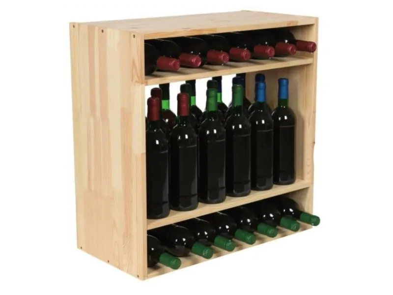 Das Weinregal besteht aus massivem Kiefernholz, was eine langlebige stabile Lagerung gewährleistet