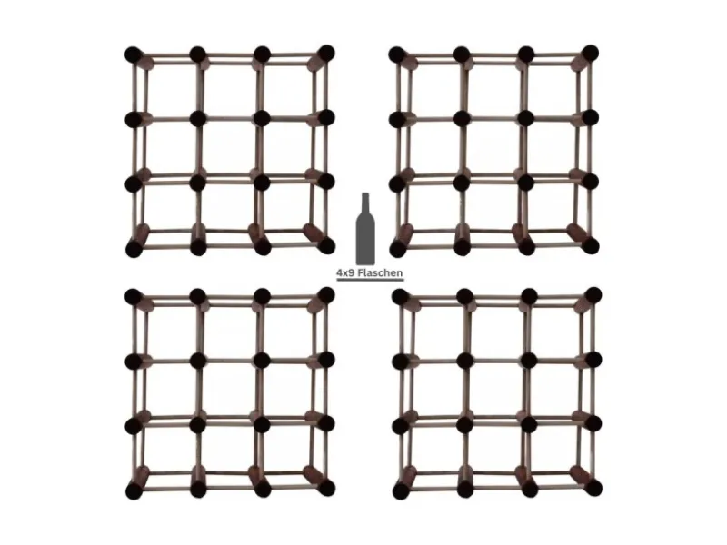 Mit dem VINOTECA MOD holst Du dir nicht nur ein praktisches Weinregal nach Hause, sondern auch einen echten Hingucker, egal wo Du es platzierst. Ob im Wohnbereich, in der Gastronomie oder im Handel – dieses originelle Regal verleiht jedem Raum eine edle und dekorative Note.Hergestellt aus hochwertigen Materialien, vereint das VINOTECA MOD schlichte Eleganz mit einem interessanten Design zu einem erschwinglichen Preis. Deine Weinflaschen werden so gelagert, dass der Wein seine Qualität bewahrt und jederzeit genussbereit ist.Perfekt für Weinliebhaber jeden Kalibers bietet das VINOTECA MOD eine sichere und stilvolle Aufbewahrungsmöglichkeit für deine Weinsammlung. Von Wohnräumen über Speisekammern bis hin zu Kellern und sogar Weinläden – diese vielseitigen Regale passen nahtlos in jede Umgebung.Die einfache Selbstmontage und die mitgelieferte Montageanleitung machen die Installation zum Kinderspiel und sparen dir wertvolle Zeit. Jedes Regal wird ohne Inhalt geliefert, damit du deine persönliche Auswahl an edlen Tropfen stilvoll präsentieren kannst.