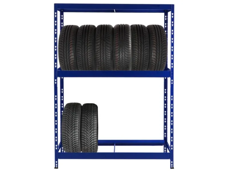 Das Reifenregal hat nach innen geneigte Längsstreben, um die Reifen langfristig zu schützen