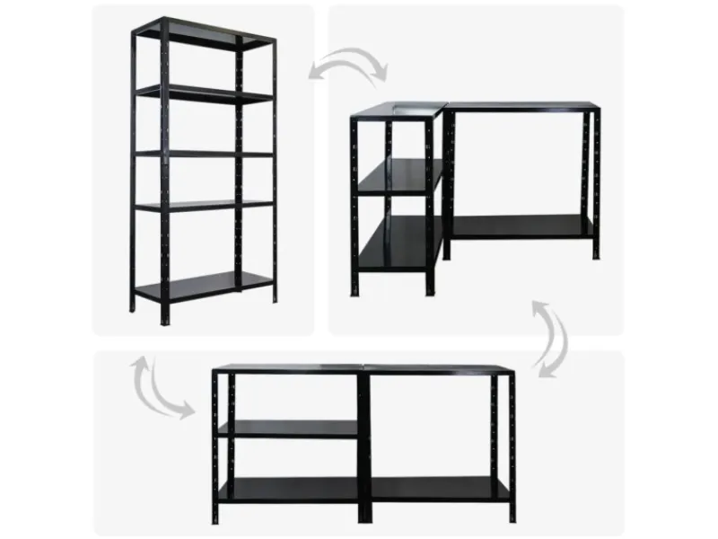 Die schwarz pulverbeschichtete Stahlkonstruktion schützt zuverlässig vor Korrosion, ist besonders pflegeleicht und robust. Kein Risiko von Schimmelbildung, ideal für Keller, Garage und andere feuchte Räume. Kunststofffüße am unteren Ende verhindern Kratzer auf deinem Boden und sorgen für einen sicheren Stand – auch bei voller Beladung.