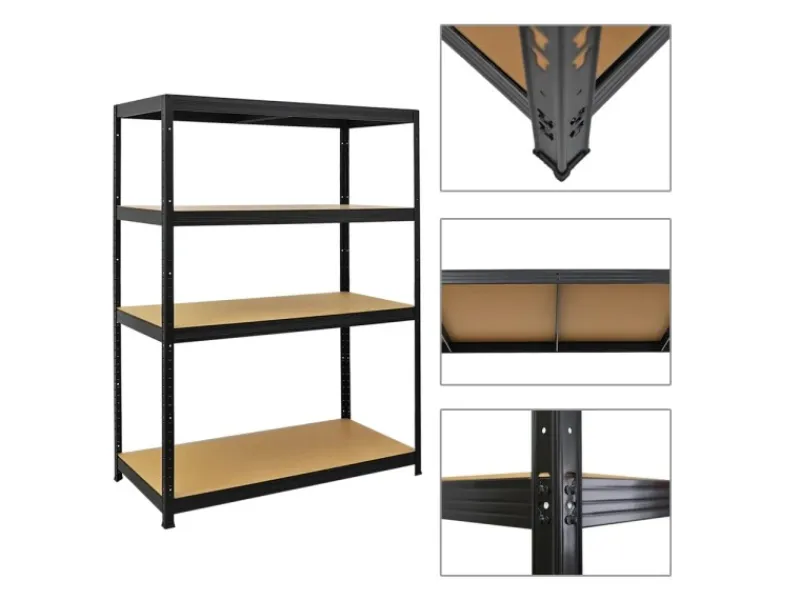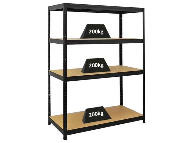 Das Regal hat 4 MDF-Holzböden, jeweils mit einem Mittelträger, und eine Traglast von 200 kg