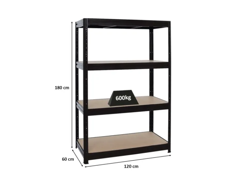 Das Schwerlastregal ist 180 cm hoch, 120 cm breit und 60 cm tief