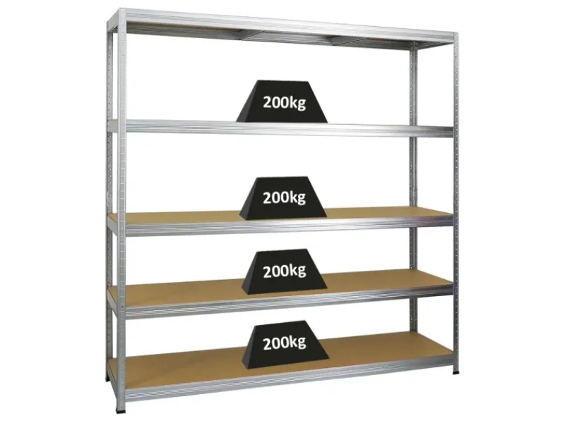 5 Fachböden aus MDF-Holzplatten mit einer Traglast von jeweils 200 kg & einer Stärke von 8 mm
