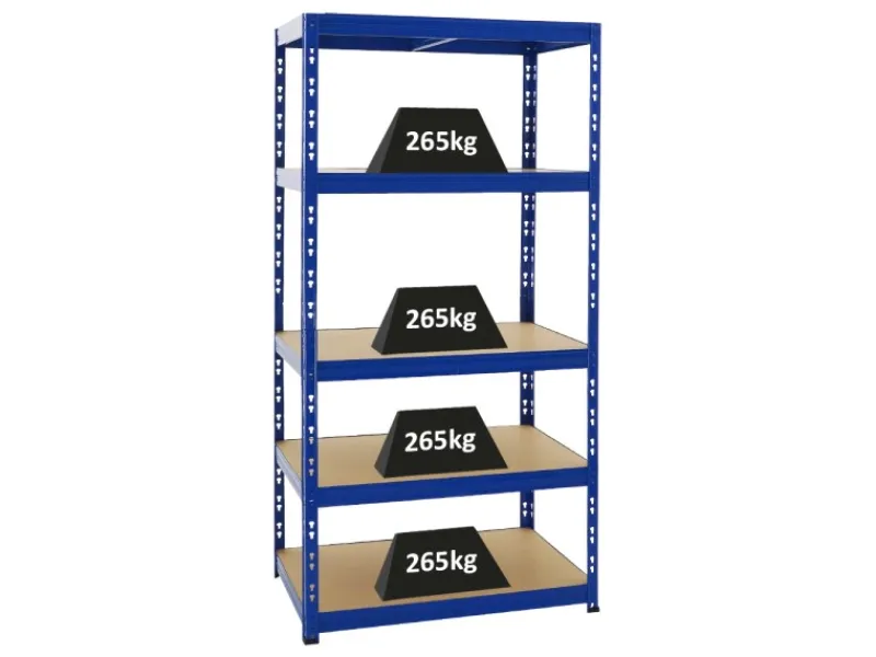 Hohe Traglast von 265 kg pro Fachboden bzw. Gesamttraglast von 1325 kg für die 5 Ebenen