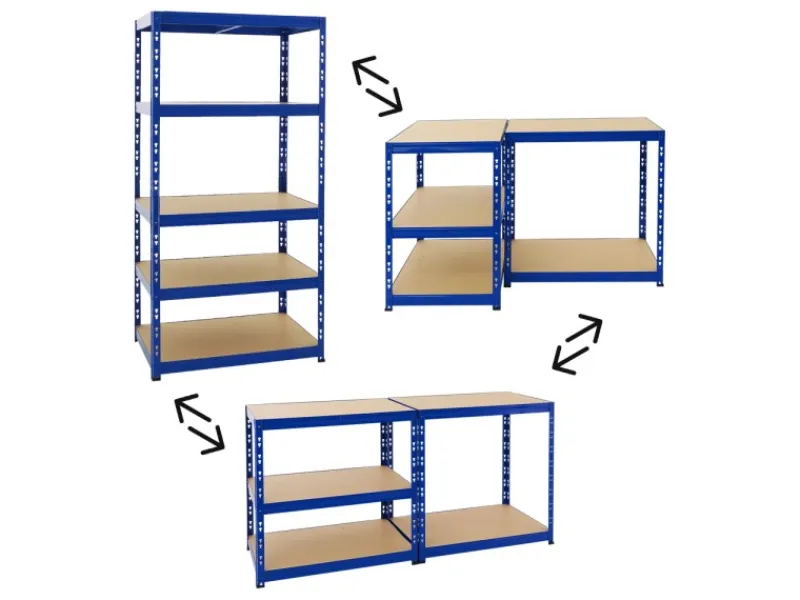Das Metall ist pulverbeschichtet, um eine lange Lebensdauer sicherzustellen und entgratet, um unangenehme Schnittkanten zu beseitigen. Der Aufbau ist einfach und erfolgt durch Steckmontage mit dem Butterfly-System. Es genügt ein Gummihammer. Um dem Schwerlastregal zusätzliche Stabilität zu geben, kann das Regal an der Wand verschraubt werden. Auch die Verbindung von mehreren Regalen ist möglich. Darüber hinaus kann das Regal in zwei Werkbänke umfunktioniert werden. Hierfür lassen sich die vertikalen Streben in der Mitte teilen, um so zwei separate Werktische bauen zu können.