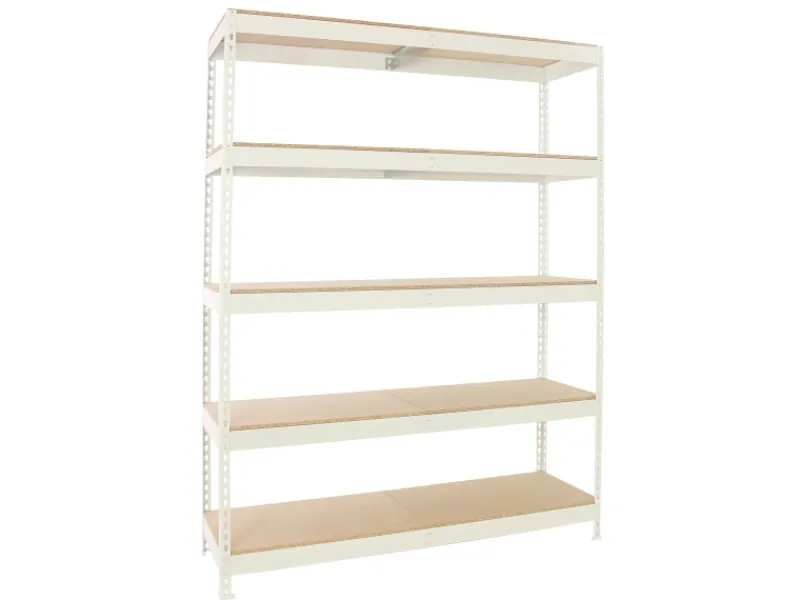 Das Metall ist pulverbeschichtet, um eine lange Lebensdauer sicherzustellen und entgratet, um unangenehme Schnittkanten zu beseitigen. Das Metallprofil der Vertikalstreben ist belastbarer als viele im Handel erhältliche Schwerlastregale.