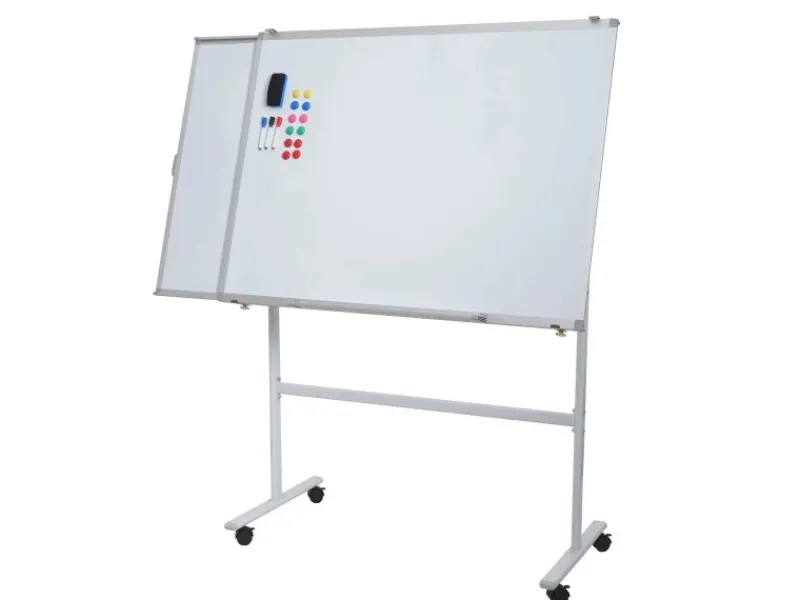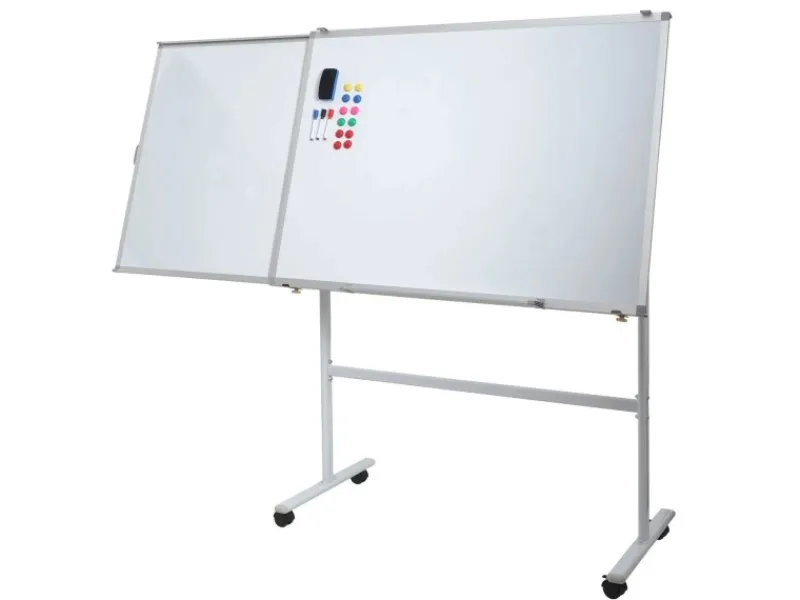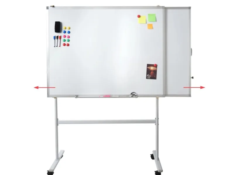 Dank der praktischen Erweiterung lässt sich das Whiteboard beidseitig ausziehen und bietet so zusätzlichen Raum für Präsentationen oder Gruppenarbeiten. Die neigbare Fläche kann individuell eingestellt werden, um den Blickwinkel optimal anzupassen. Vier feststellbare Rollen sorgen für einen sicheren Stand und einfaches Verschieben. Mit seiner robusten Konstruktion aus Aluminium und Stahl vereint dieses Whiteboard Langlebigkeit, Funktionalität und modernes Design – perfekt für dynamische Arbeitsumgebungen.