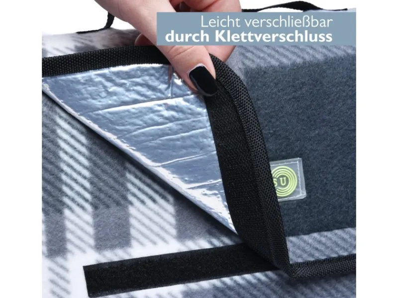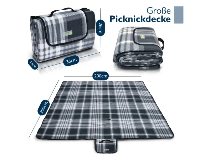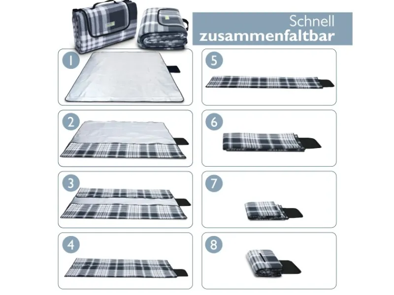 Die faltbare Stranddecke Sandfrei lässt sich mit Hilfe der beigefügten Anleitung zum Falten sehr leicht zu einer kompakten Outdoor Decke falten. Durch einen Klettverschluss ist sie leicht verschließbar und durch den eingearbeiteten Tragegriff kann die Picknickdecke xxl ohne Probleme an alle Orte transportiert werden. Das Transportmaß beträgt 38x14x27cm.Die untere Seite der Campingdecke ist mit einer Alubeschichtung versehen, wodurch die Picknickdecke isoliert & wasserdicht ist. Auf leicht feuchten Böden lässt es sich mit dem Strandtuch gemütlich picknicken.Die große Picknickdecke wasserdicht 200×200 cm ist ideal für mehrere Personen. Ob im Schwimmbad, am Strand, beim Camping oder Wandern, Ruhen Sie sich mit bis zu 4 Personen auf dieses Camping Teppich Outdoor aus und genießen Sie das gute Wetter.Die Oberseite der sandfreien XXL Stranddecke 200×200 cm lässt sich schnell und einfach mit einer Bürste reinigen. Die wasserdichte Unterseite kann mit einem feuchten Lappen gesäubert werden. Sie ist somit das ideale Strand Gadget & Strand Must Haves.
