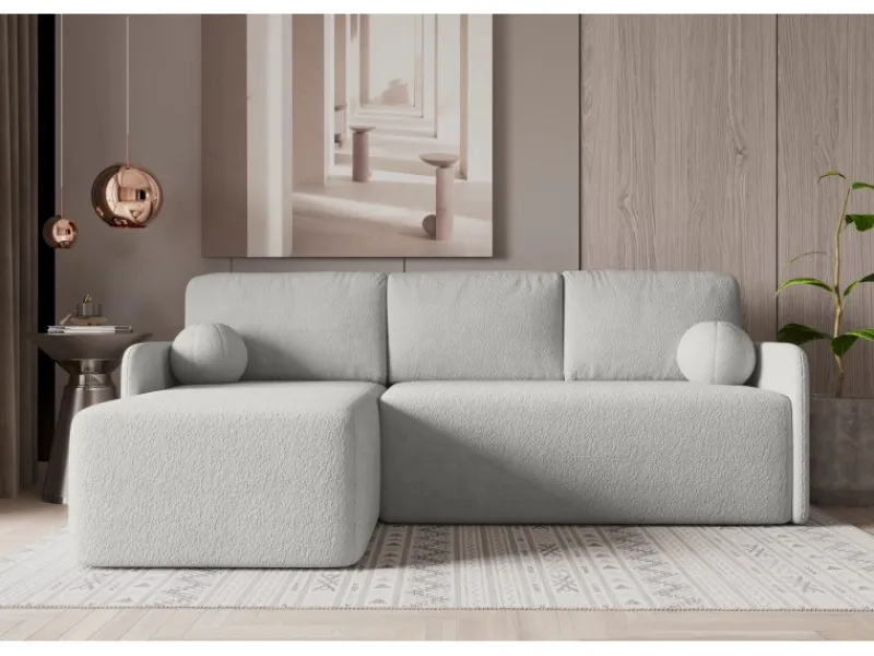 Dieses Ecksofa mit Schlaffunktion verbindet modernes Aussehen mit praktischer Nutzung. Mit wenigen Handgriffen wird es zu einem Bett mit einer Liegefläche von 198 × 123 cm – ideal für Gäste oder den täglichen Gebrauch.