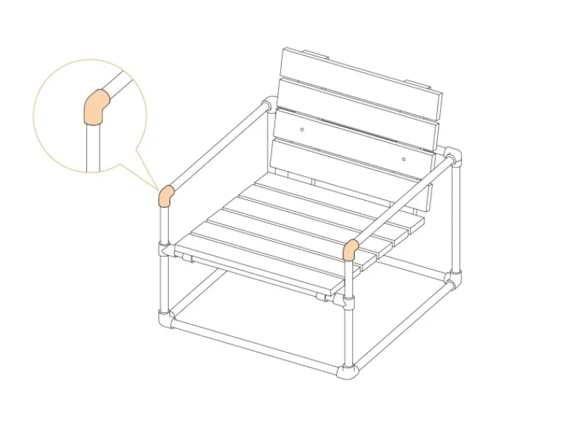 Bildet zusammen mit passenden Rohren und Verbindern das Gestell des Möbelstücks