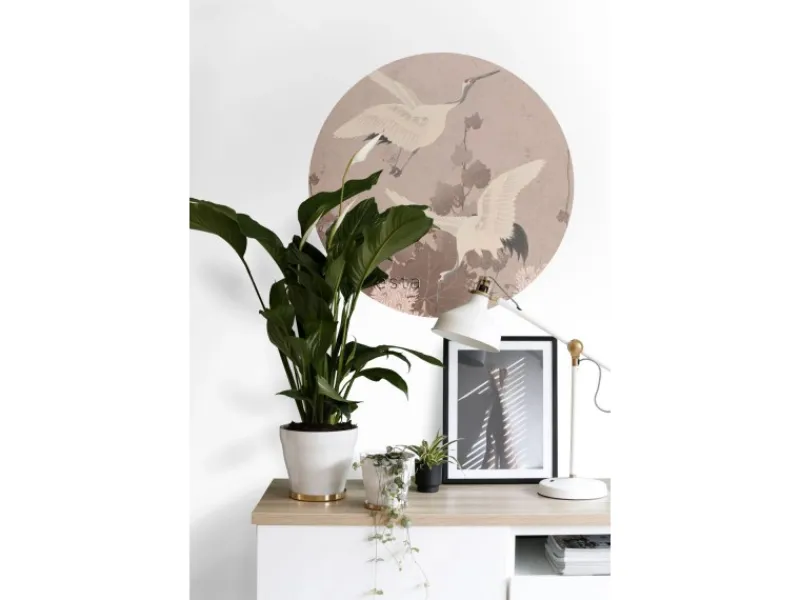Sale ESTAhome Selbstklebende Runde Tapete Kraniche Graurosa Ø 70 cm 158995