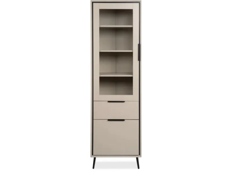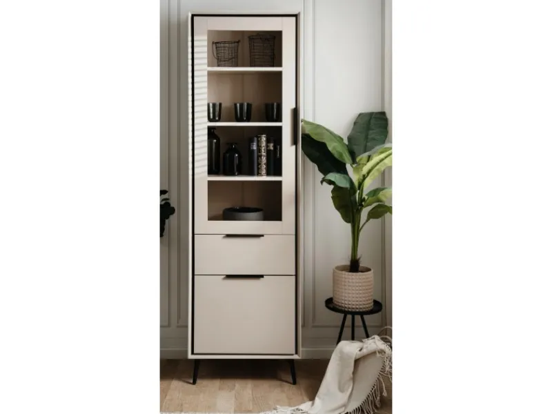Trendige Vitrine (BxH 60 x 200 cm) in Sand mit schwarzer Absetzung