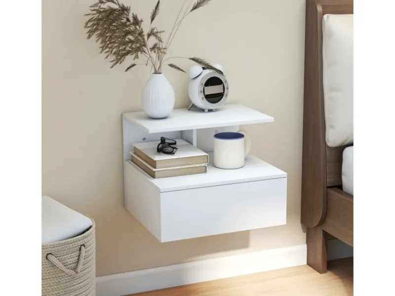 ● Wandmontiertes Design der Nachtkommode spart Platz in kleinen Schlafzimmern