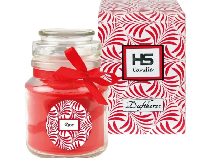Sale HS Candle Duftkerze & Glas Duft Schriftzug Bonbon Ø7 cm Rose