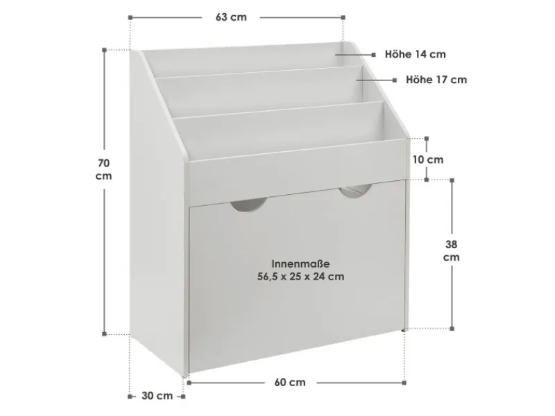 – Gesamtgröße Kinderregal: 63 x 30 x 70 cm (BxTxH)