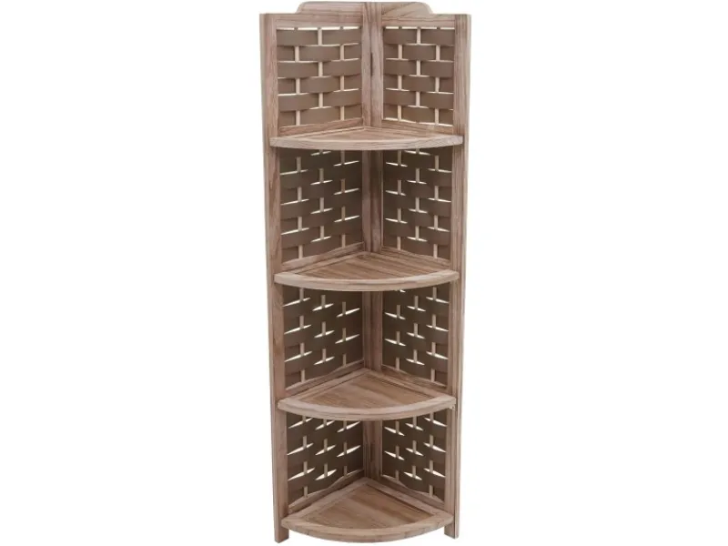 Dieses Regal bietet Stauraum für Ihre alltäglichen Gegenstände. Egal ob im Bad, Kinderzimmer, Flur oder Küche, es macht überall eine gute Figur. Durch das zeitlose und moderne Design fügt sich dieses Eckregal dekorativ in fast jedes Ambiente ein und setzt einen eleganten Akzent in Ihrem Zuhause. Die Materialkombination aus Holz und dem Geflecht rundet das Gesamtbild dieses Standregals bestens ab. Sollten Sie das Regal mal platzsparend verstauen möchten, können Sie es im Handumdrehen zusammenklappen.