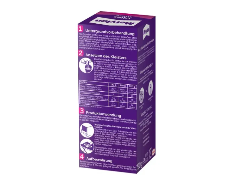 Lieferumfang: Metylan Vlies Tapetenkleister, Kleister zum Anrühren, 720 g Box