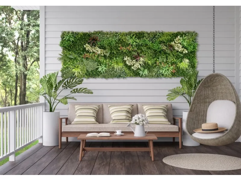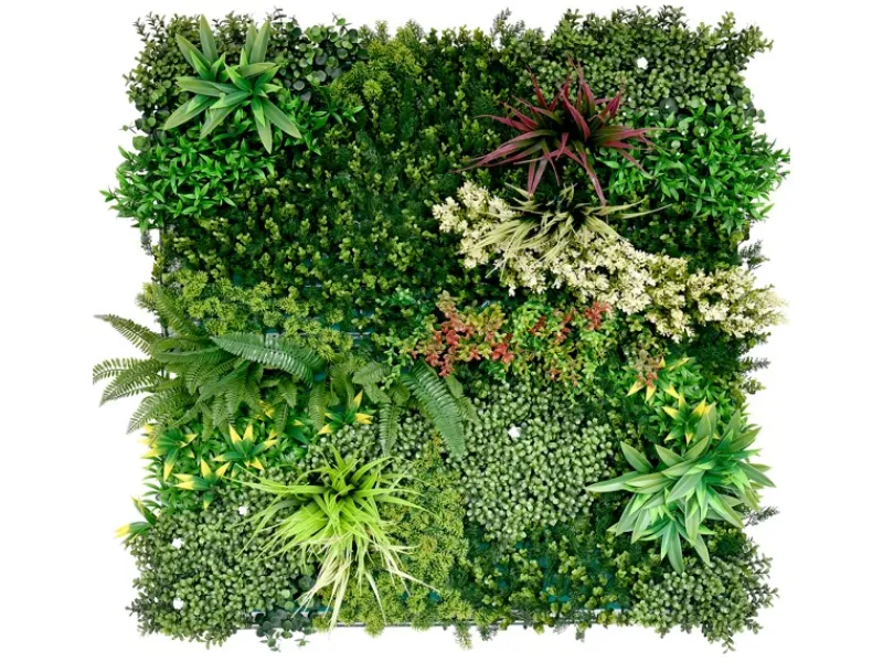 Mit einer Größe von 100×100 cm und 1489 Blättern bringt die künstliche Pflanzenwand eine grüne, natürliche Atmosphäre in jeden Raum.