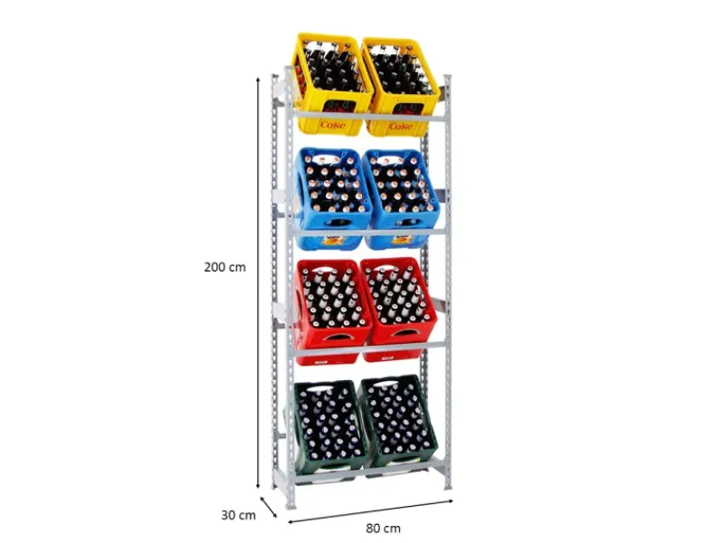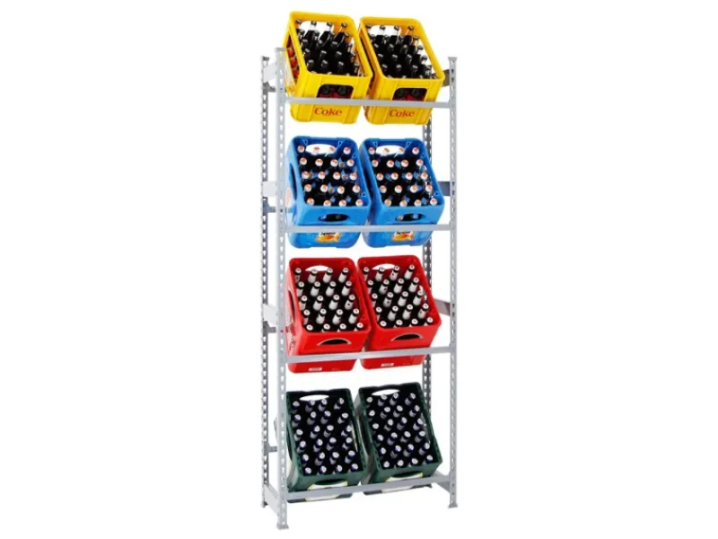 Selbstverständlich sind die Fachböden in der Höhe verstellbar und zwar in einem 3,8cm Raster. Das Getränkekistenregal CAMEL ist in diversen Farben erhältlich. Die Kunststoffkappen erhöhen die Standstabilität und vermeiden Kratzer.