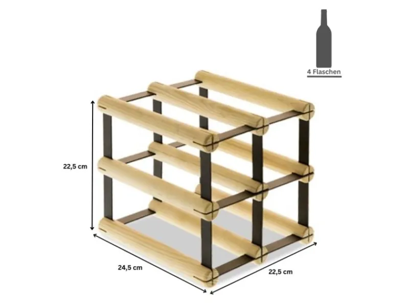 Schreibe die erste Bewertung für „Sale PROREGAL Modulares Weinregal Vinotega Mod Metal HxBxT 22,5 x 22,5 x 24,5 cm 2 x 2 Flaschen Massives Kiefernholz Geölt Braun“