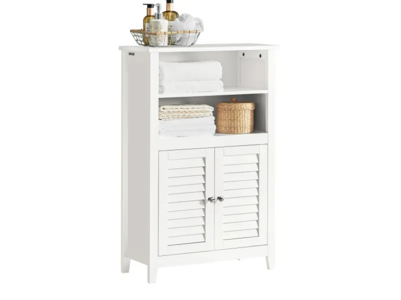 Vielseitiger Badschrank mit weiß lackierter Oberfläche – passt perfekt zu modernen Badezimmermöbeln, ideal als Schuhschrank, Sideboard oder Aufbewahrungslösung im Flur.